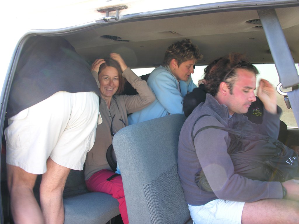 Brigitte au volant du minibus pour nous déposer à nos hôtels respectifs